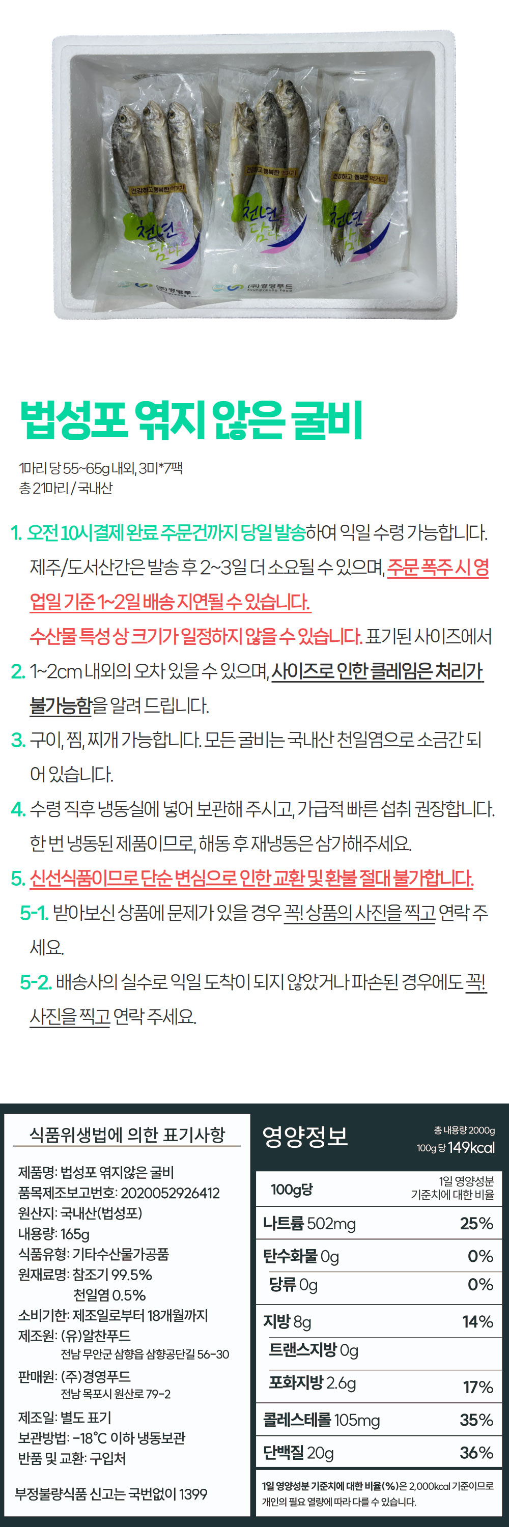 법성포 엮지않은 굴비 3미*7팩