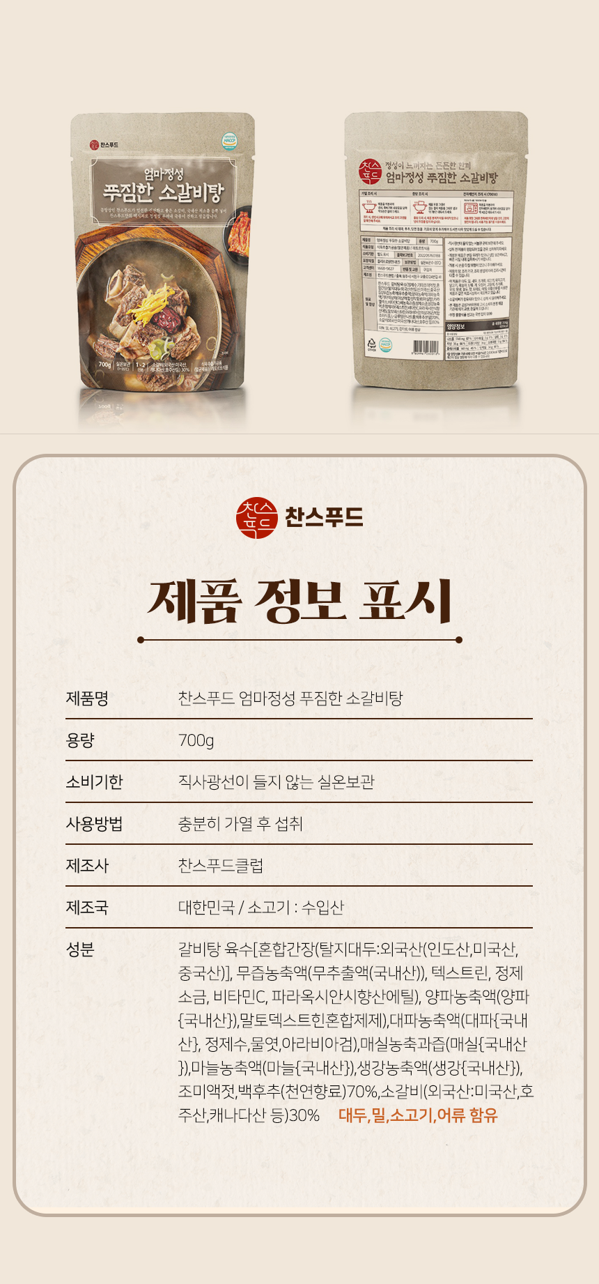[찬스푸드] 푸짐한 소갈비탕 700g