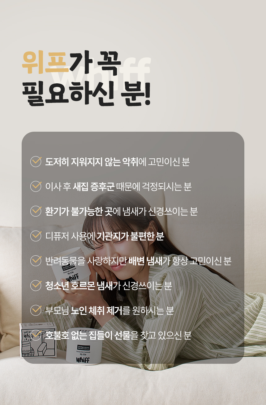 [위프] 탈취제 WHIFF 화장실 담배 새집증후군 홀애비 소변기 초강력 냄새 제거
