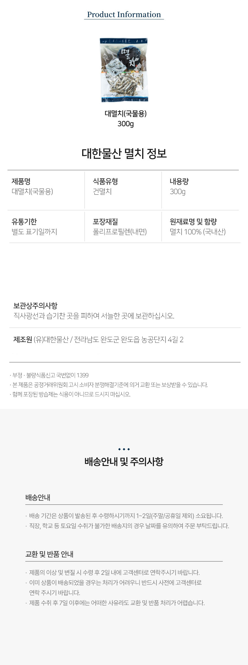 [대한물산] 대 멸치(손질멸치_국물용) 300g