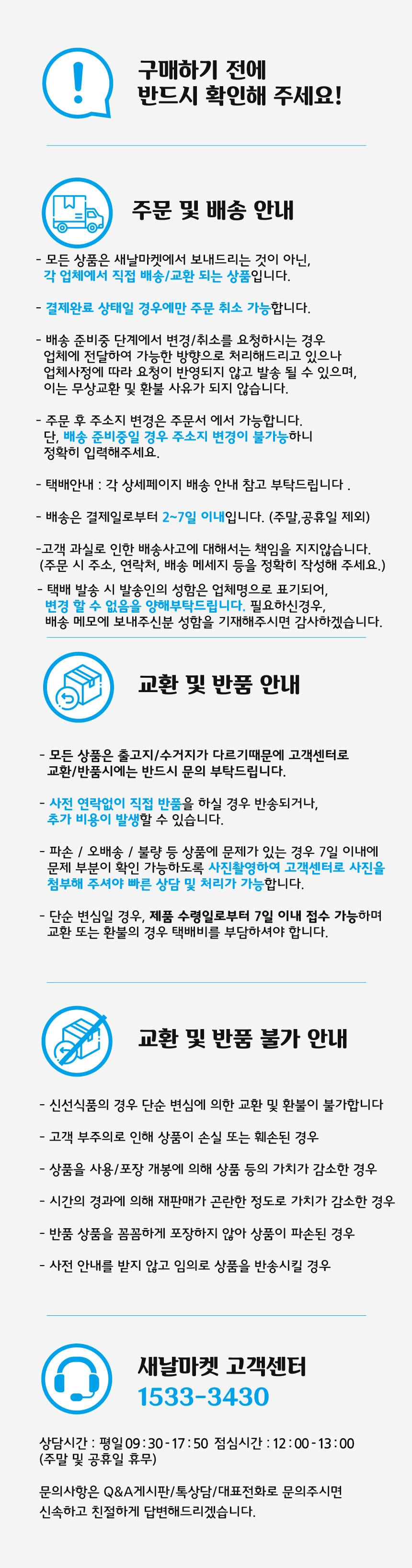 새날마켓에서 판매하는 상품에 대한 책임과