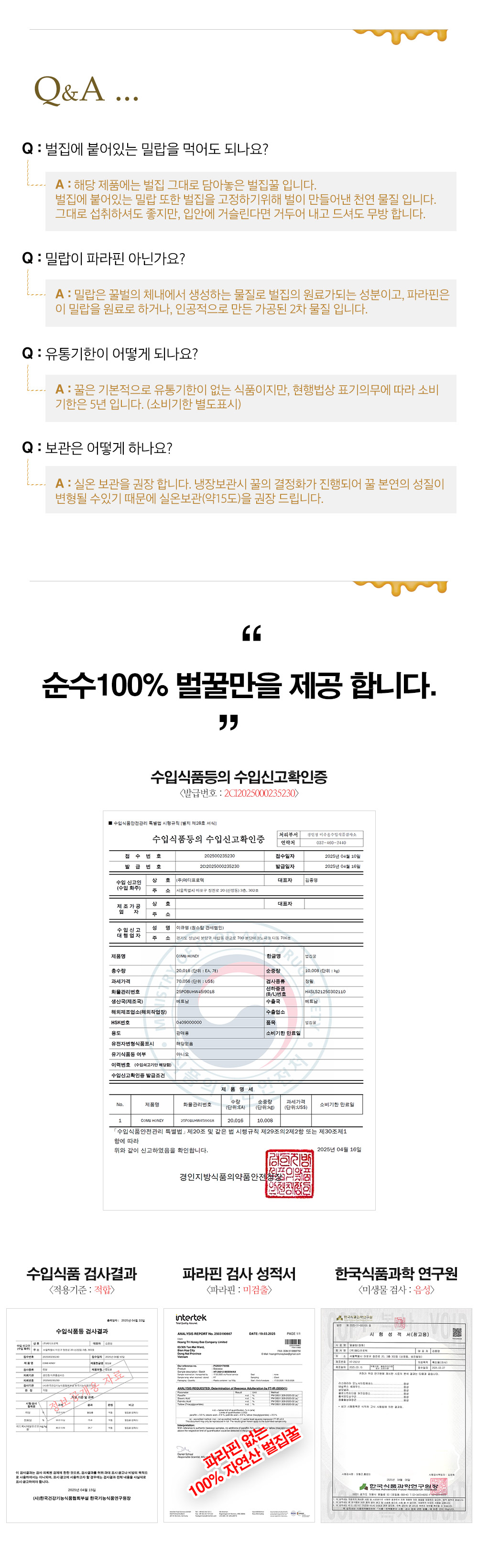[허니베어] 베트남산 100% 천연 요아정 토핑 벌집꿀 천연 꿀벌집 밀랍꿀