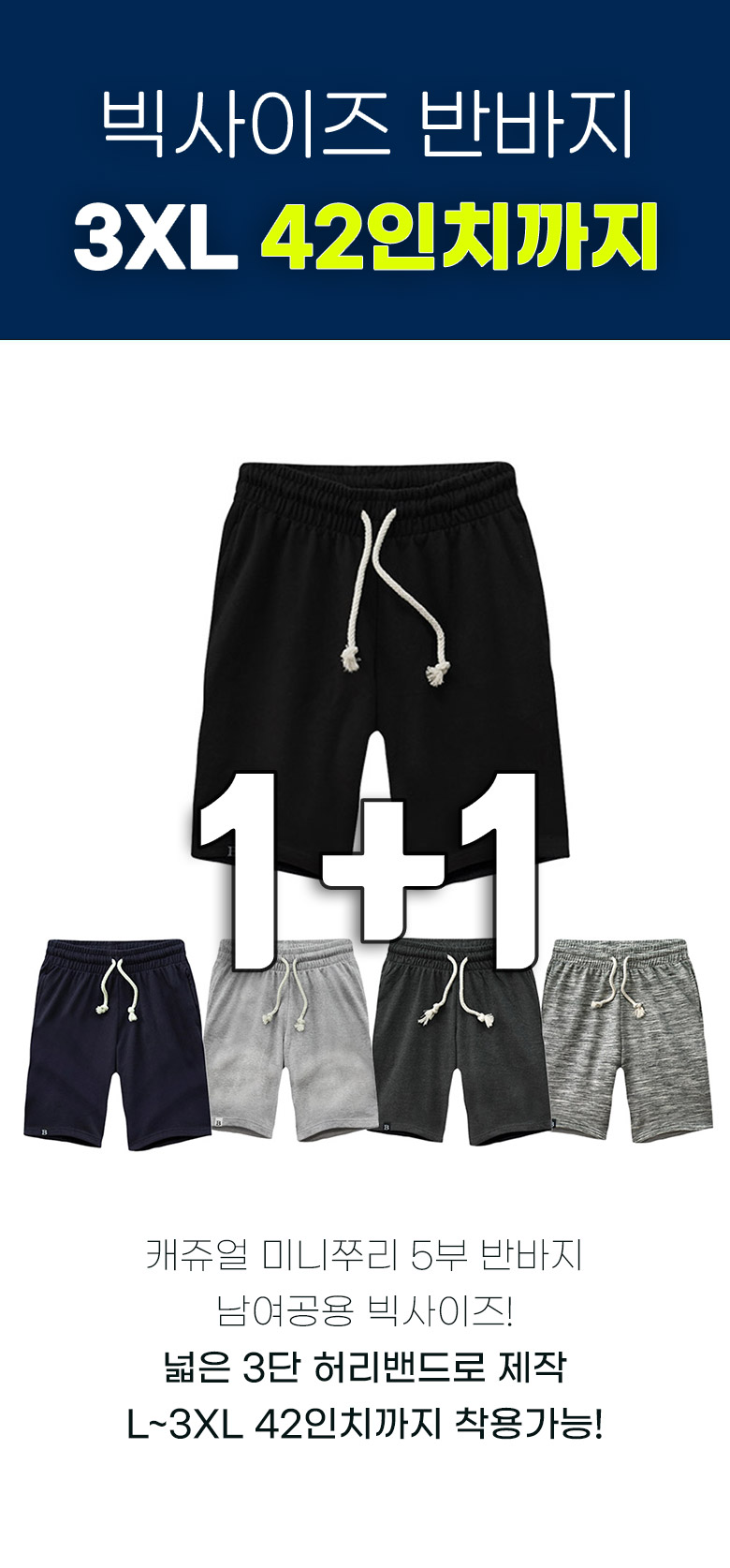 [더폴그라운드] 5부무지 반바지 1+1 (*42인치까지 착용가능)