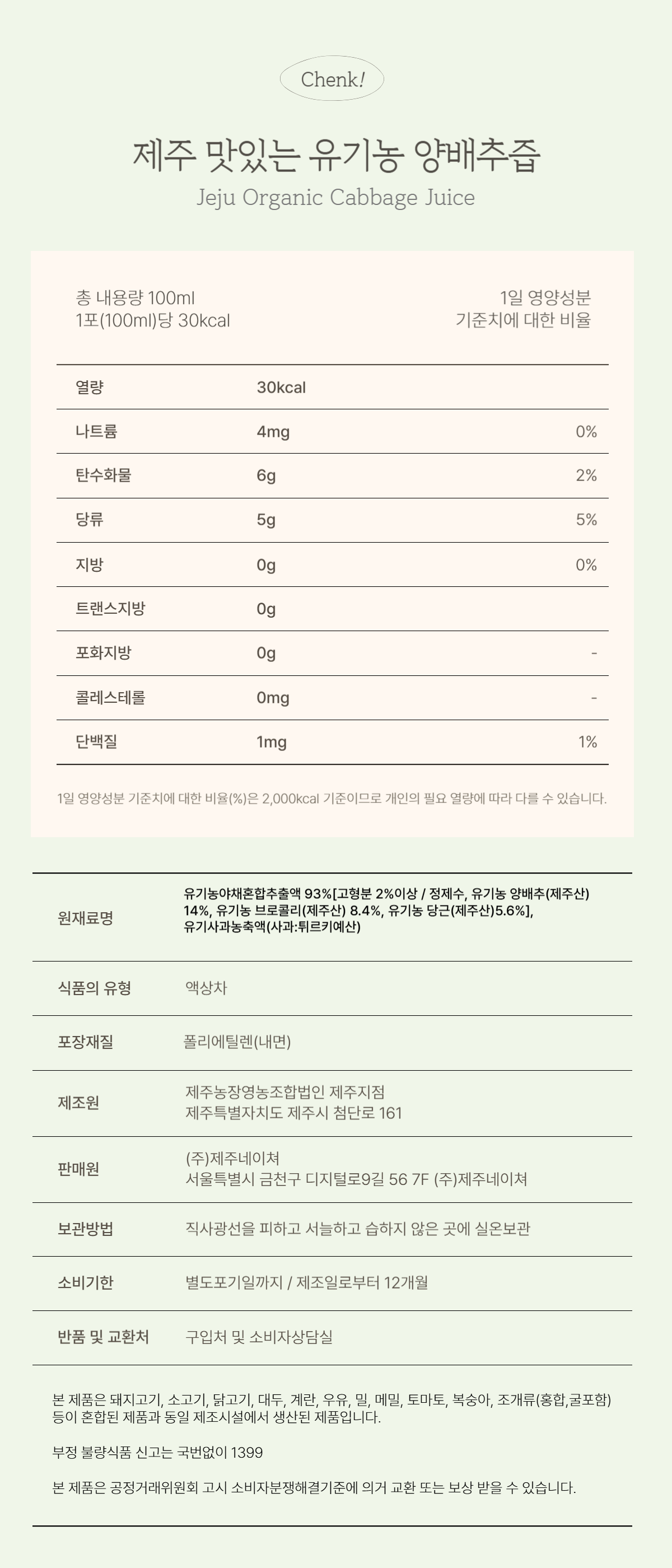 [제주네이쳐] 제주 맛있는 유기농 양배추즙